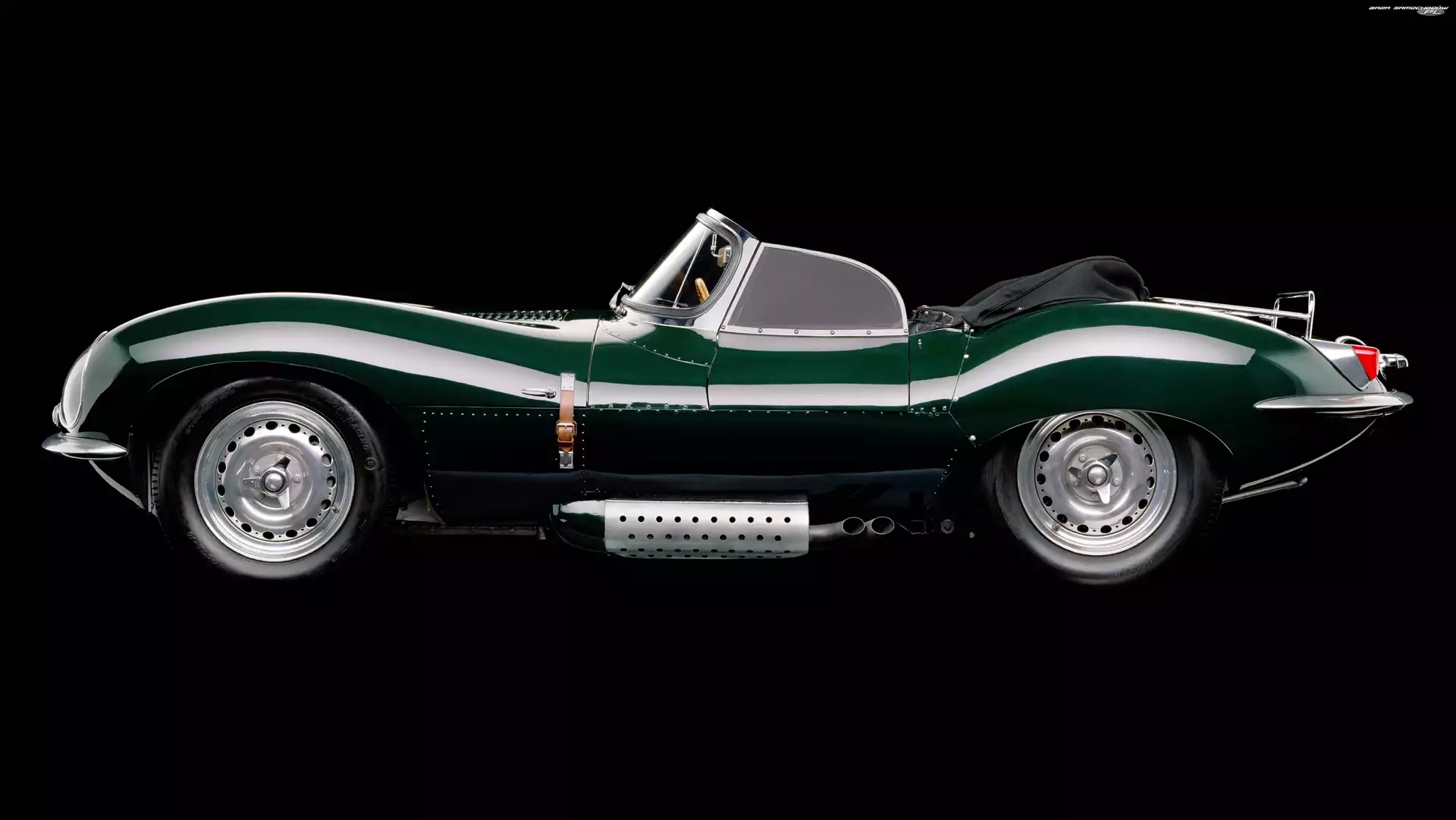 Zielony, Samochód, Zabytkowy, Rura Wydechowa, Jaguar Xkss 1956, Otwarty Dach- Zdjęcia samochodów